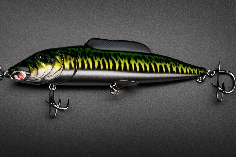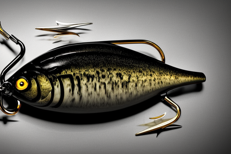 Stable Diffusion AI Prompt product photography of a fishing lure with hooks that looks like a Black colored Bass!!!, (anatomically correct), futuristic, uhd, highly detailed, concept, product studio shot, panoramic shot, centered!!!, diffused lighting on a plain dark background, highly detailed, masterpiece, product photography by Wlop and Jovana Rikalo