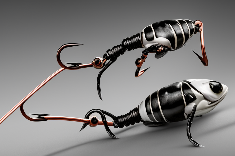 Stable Diffusion AI Prompt product photography of a fishing lure with hooks that looks like a Black colored Bay Bug!!!, (anatomically correct), futuristic, uhd, highly detailed, concept, product studio shot, panoramic shot, centered!!!, diffused lighting on a plain dark background, highly detailed, masterpiece, product photography by Wlop and Jovana Rikalo