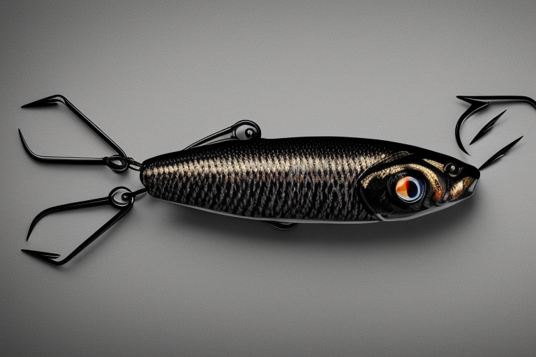 Stable Diffusion AI Prompt product photography of a fishing lure with hooks that looks like a Black colored Crappie!!!, (anatomically correct), futuristic, uhd, highly detailed, concept, product studio shot, panoramic shot, centered!!!, diffused lighting on a plain dark background, highly detailed, masterpiece, product photography by Jovana Rikalo