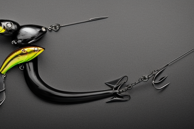 Stable Diffusion AI Prompt product photography of a fishing lure with hooks that looks like a Black colored Worm!!!, (anatomically correct), futuristic, uhd, highly detailed, concept, product studio shot, panoramic shot, centered!!!, diffused lighting on a plain dark background, highly detailed, masterpiece, product photography by Wlop and Jovana Rikalo