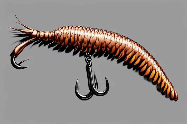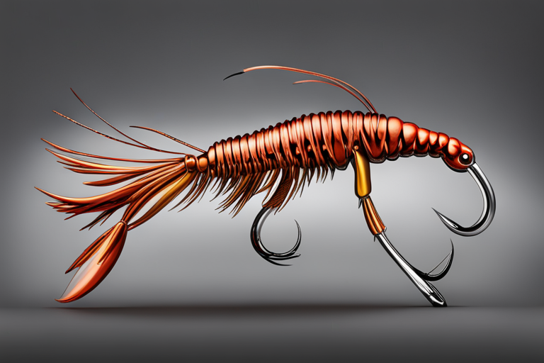 Stable Diffusion AI Prompt Fishing lure precisely mimics the exact shape and colors of a (((Brown Crawfish))). A panoramic studio shot of the highly detailed Brown colored ((Crawfish-shaped)) fishing lure with treble hooks designed to catch fish, centered product photography. A masterpiece product photo on a (black background).