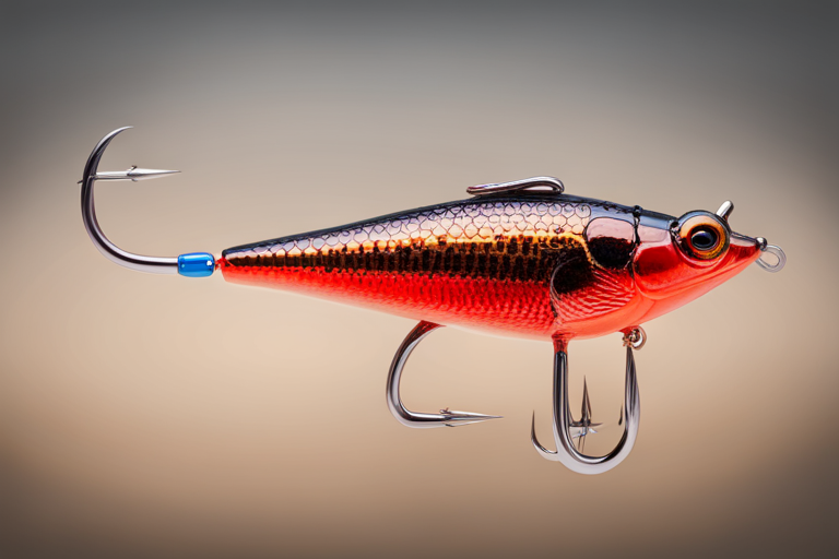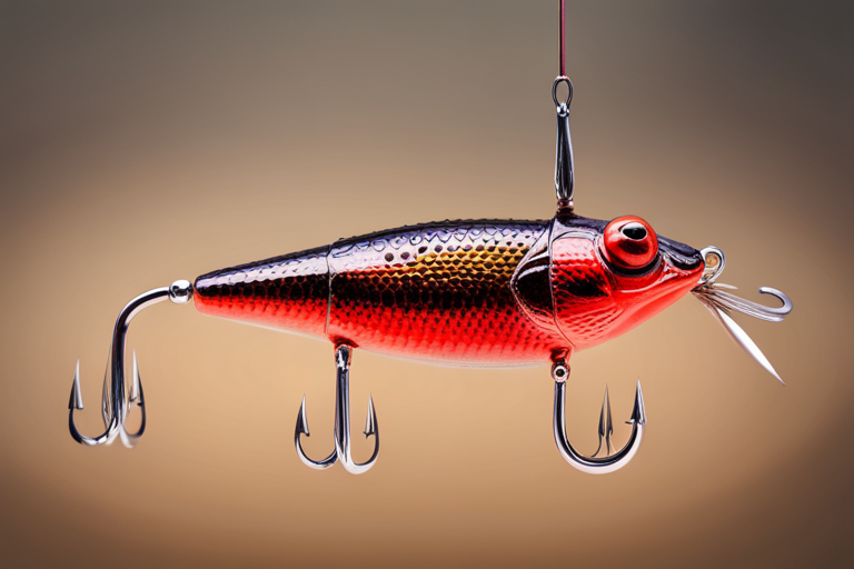 Stable Diffusion AI Prompt Fishing lure precisely mimics the exact (((shape and colors of a Brown Frog))). A panoramic studio shot of the highly detailed conceptual Frog-shaped fishing lure designed to catch fish, centered product photography. It has treble hooks and is Brown in color. A masterpiece product photo on plain dark background