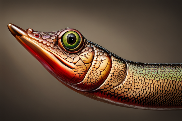 Stable Diffusion AI Prompt Fishing lure precisely mimics the exact shape and colors of a (((Brown Lizard))). A panoramic studio shot of the highly detailed Brown colored ((Lizard-shaped)) fishing lure with treble hooks designed to catch fish, centered product photography. A masterpiece product photo on a (black background).