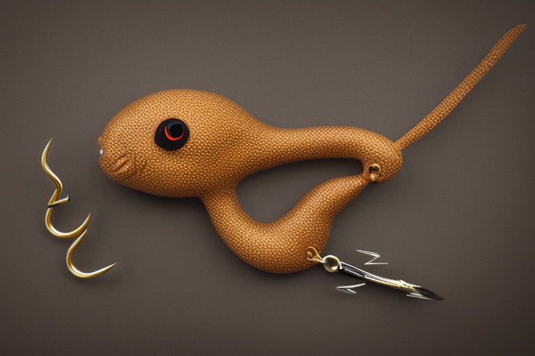 Stable Diffusion AI Prompt product photography of a fishing lure with hooks that looks like a Brown colored Rodent!!!, (anatomically correct), futuristic, uhd, highly detailed, concept, product studio shot, panoramic shot, centered!!!, diffused lighting on a plain dark background, highly detailed, masterpiece, product photography by Jovana Rikalo