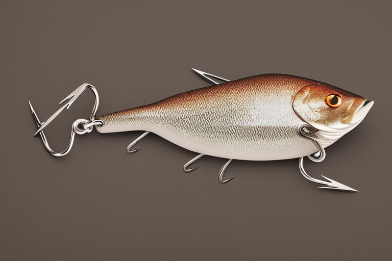 Stable Diffusion AI Prompt product photography of a fishing lure with hooks that looks like a Brown colored Shad!!!, (anatomically correct), futuristic, uhd, highly detailed, concept, product studio shot, panoramic shot, centered!!!, diffused lighting on a plain dark background, highly detailed, masterpiece, product photography by Jovana Rikalo