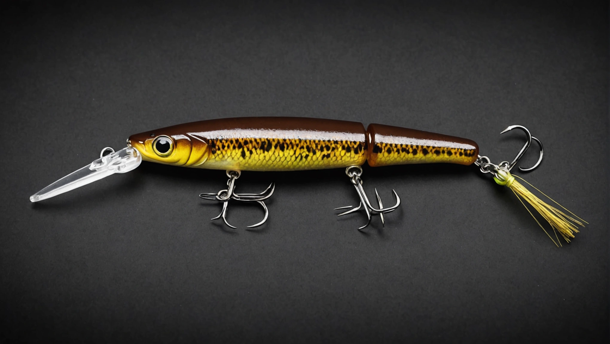 Fishing lure with fishing hooks like (((Brown Skibidi))). A studio shot masterpiece lure product photo centered on a (black background).