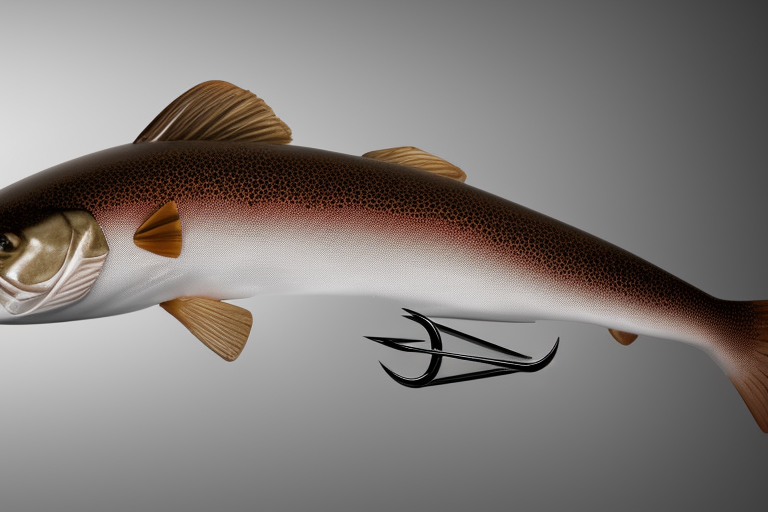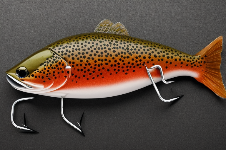 Stable Diffusion AI Prompt product photography of a fishing lure with hooks that looks like a Brown colored Trout!!!, (anatomically correct), futuristic, uhd, highly detailed, concept, product studio shot, panoramic shot, centered!!!, diffused lighting on a plain dark background, highly detailed, masterpiece, product photography by Wlop and Jovana Rikalo