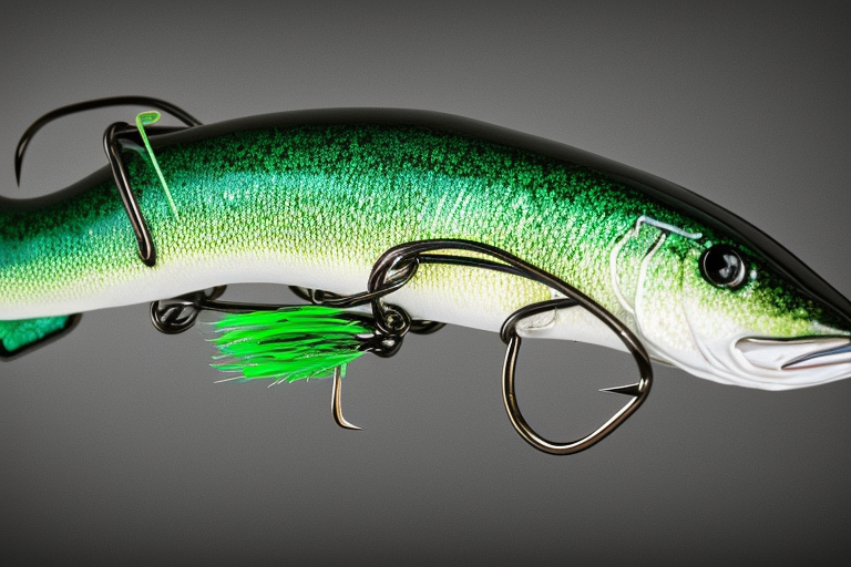 Stable Diffusion AI Prompt product photography of a fishing lure with hooks that looks like a Dark Green colored Bass!!!, (anatomically correct), futuristic, uhd, highly detailed, concept, product studio shot, panoramic shot, centered!!!, diffused lighting on a plain dark background, highly detailed, masterpiece, product photography by Jovana Rikalo