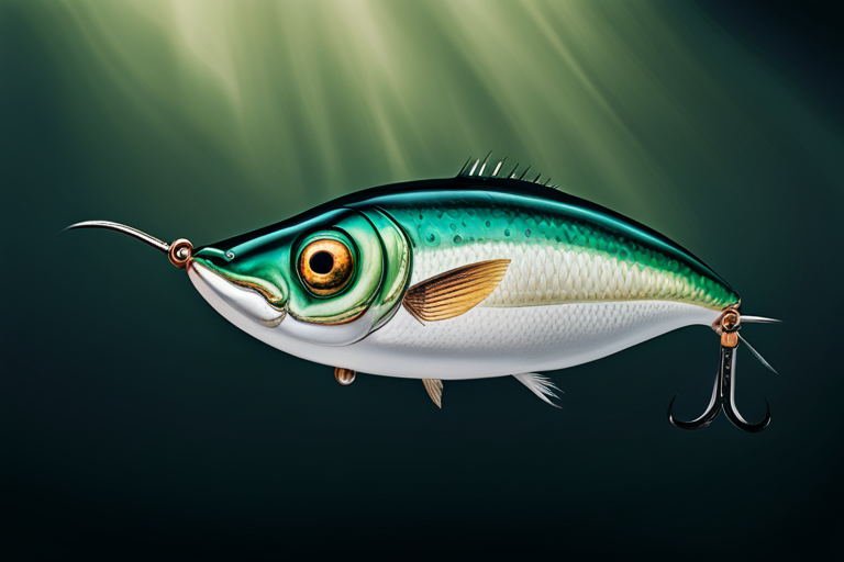 Stable Diffusion AI Prompt Fishing lure precisely mimics the exact shape and colors of a (((Dark Green Blobfish))). A panoramic studio shot of the highly detailed Dark Green colored ((Blobfish-shaped)) fishing lure with treble hooks designed to catch fish, centered product photography. A masterpiece product photo on a (black background).