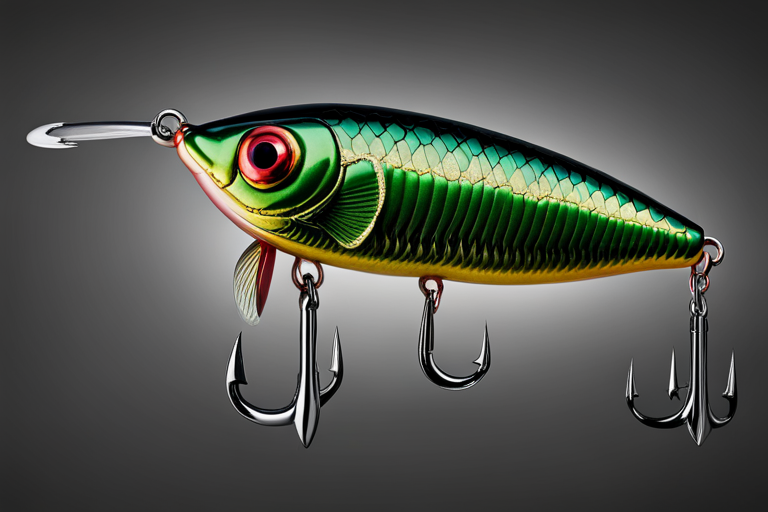 Stable Diffusion AI Prompt Fishing lure precisely mimics the exact shape and colors of a (((Dark Green Grub))). A panoramic studio shot of the highly detailed Dark Green colored ((Grub-shaped)) fishing lure with treble hooks designed to catch fish, centered product photography. A masterpiece product photo on a (black background).