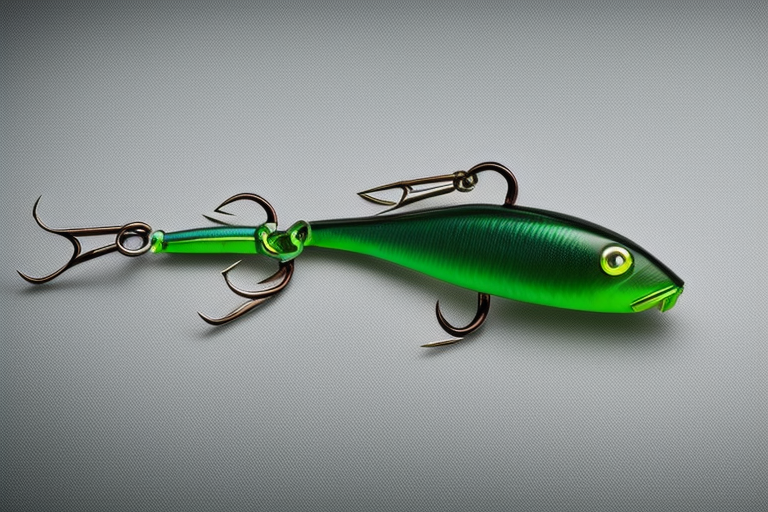 Stable Diffusion AI Prompt product photography of a fishing lure with hooks that looks like a Dark Green colored Perch!!!, (anatomically correct), futuristic, uhd, highly detailed, concept, product studio shot, panoramic shot, centered!!!, diffused lighting on a plain dark background, highly detailed, masterpiece, product photography by Jovana Rikalo