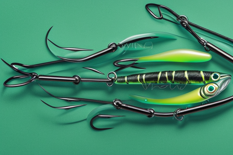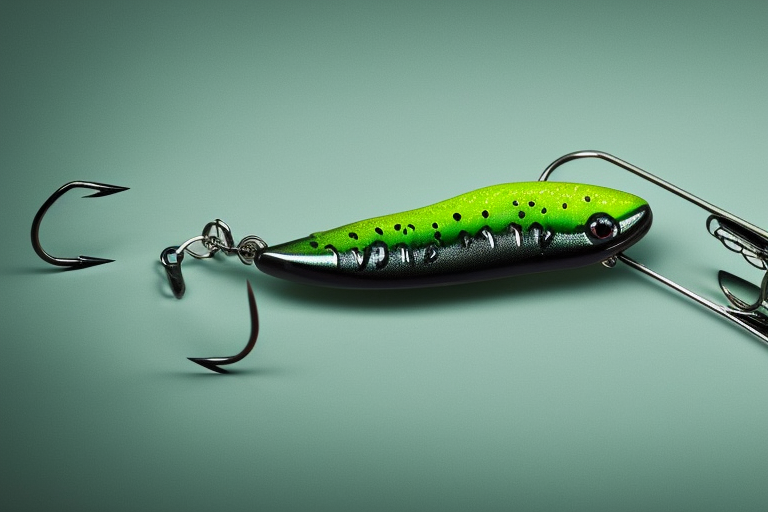Stable Diffusion AI Prompt product photography of a fishing lure with hooks that looks like a Dark Green colored Tadpole!!!, (anatomically correct), futuristic, uhd, highly detailed, concept, product studio shot, panoramic shot, centered!!!, diffused lighting on a plain dark background, highly detailed, masterpiece, product photography by Wlop and Jovana Rikalo