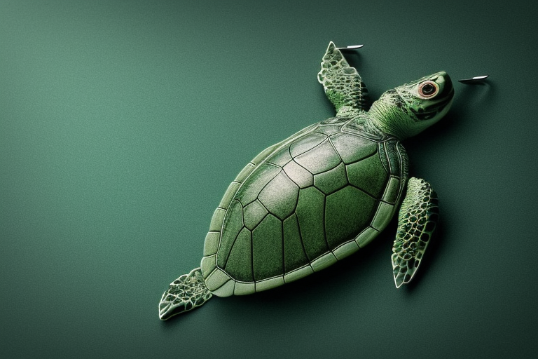 Stable Diffusion AI Prompt fishing lure with hooks looks like a Dark Green colored Turtle!!!, (anatomically correct), futuristic, uhd, highly detailed, concept, product studio shot, panoramic shot!!!, centered!!!, diffused lighting on a plain dark background, highly detailed, masterpiece, product photography by Jovana Rikalo