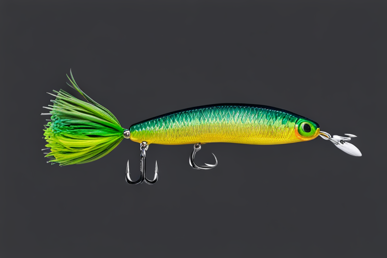 Stable Diffusion AI Prompt Fishing lure precisely mimics the exact shape and colors of a (((Green Earthworm))). A panoramic studio shot of the highly detailed Green colored ((Earthworm-shaped)) fishing lure with treble hooks designed to catch fish, centered product photography. A masterpiece product photo on a (black background).