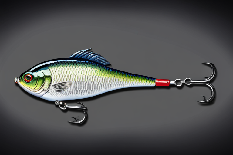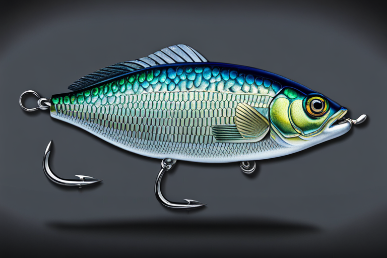 Stable Diffusion AI Prompt Fishing lure precisely mimics the exact shape and colors of a (((Indigo Crappie))). A panoramic studio shot of the highly detailed Indigo colored ((Crappie-shaped)) fishing lure with treble hooks designed to catch fish, centered product photography. A masterpiece product photo on a (black background).