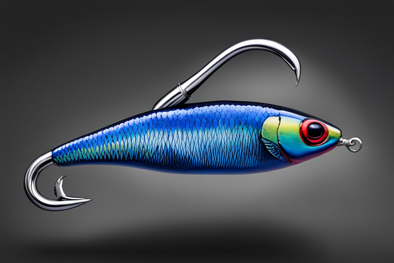 Stable Diffusion AI Prompt Fishing lure precisely mimics the exact shape and colors of a (((Indigo Earthworm))). A panoramic studio shot of the highly detailed Indigo colored ((Earthworm-shaped)) fishing lure with treble hooks designed to catch fish, centered product photography. A masterpiece product photo on a (black background).