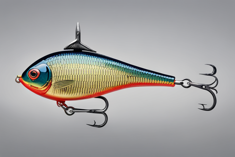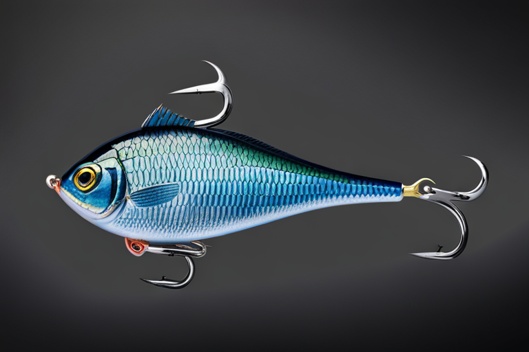 Stable Diffusion AI Prompt Fishing lure precisely mimics the exact shape and colors of a (((Indigo Sunfish))). A panoramic studio shot of the highly detailed Indigo colored ((Sunfish-shaped)) fishing lure with treble hooks designed to catch fish, centered product photography. A masterpiece product photo on a (black background).