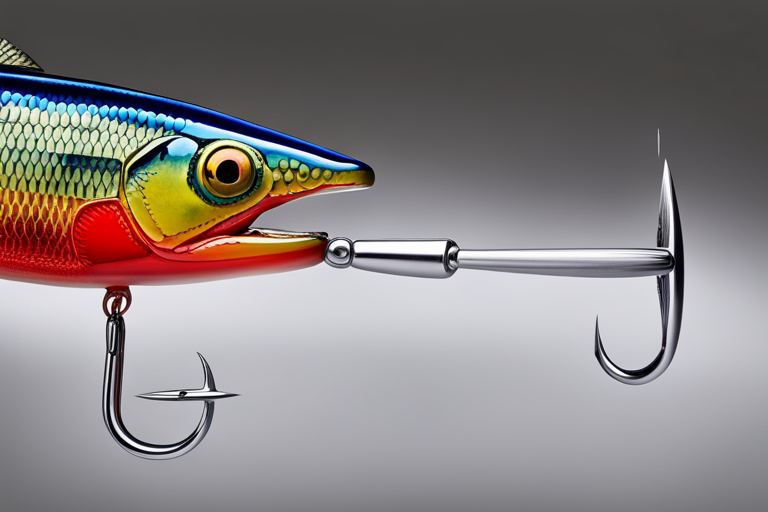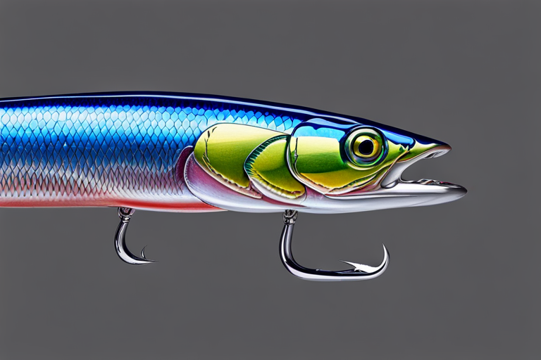 Stable Diffusion AI Prompt Fishing lure precisely mimics the exact shape and colors of a (((Indigo Trout))). A panoramic studio shot of the highly detailed Indigo colored ((Trout-shaped)) fishing lure with treble hooks designed to catch fish, centered product photography. A masterpiece product photo on a (black background).