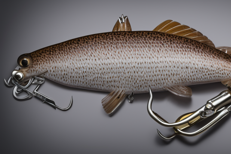 Stable Diffusion AI Prompt product photography of a fishing lure with hooks that looks like a Light Brown colored Crappie!!!, (anatomically correct), futuristic, uhd, highly detailed, concept, product studio shot, panoramic shot, centered!!!, diffused lighting on a plain dark background, highly detailed, masterpiece, product photography by Jovana Rikalo