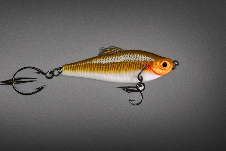 Stable Diffusion AI Prompt product photography of a fishing lure with hooks that looks like a Light Brown colored Crappie!!!, (anatomically correct), futuristic, uhd, highly detailed, concept, product studio shot, panoramic shot, centered!!!, diffused lighting on a plain dark background, highly detailed, masterpiece, product photography by Jovana Rikalo