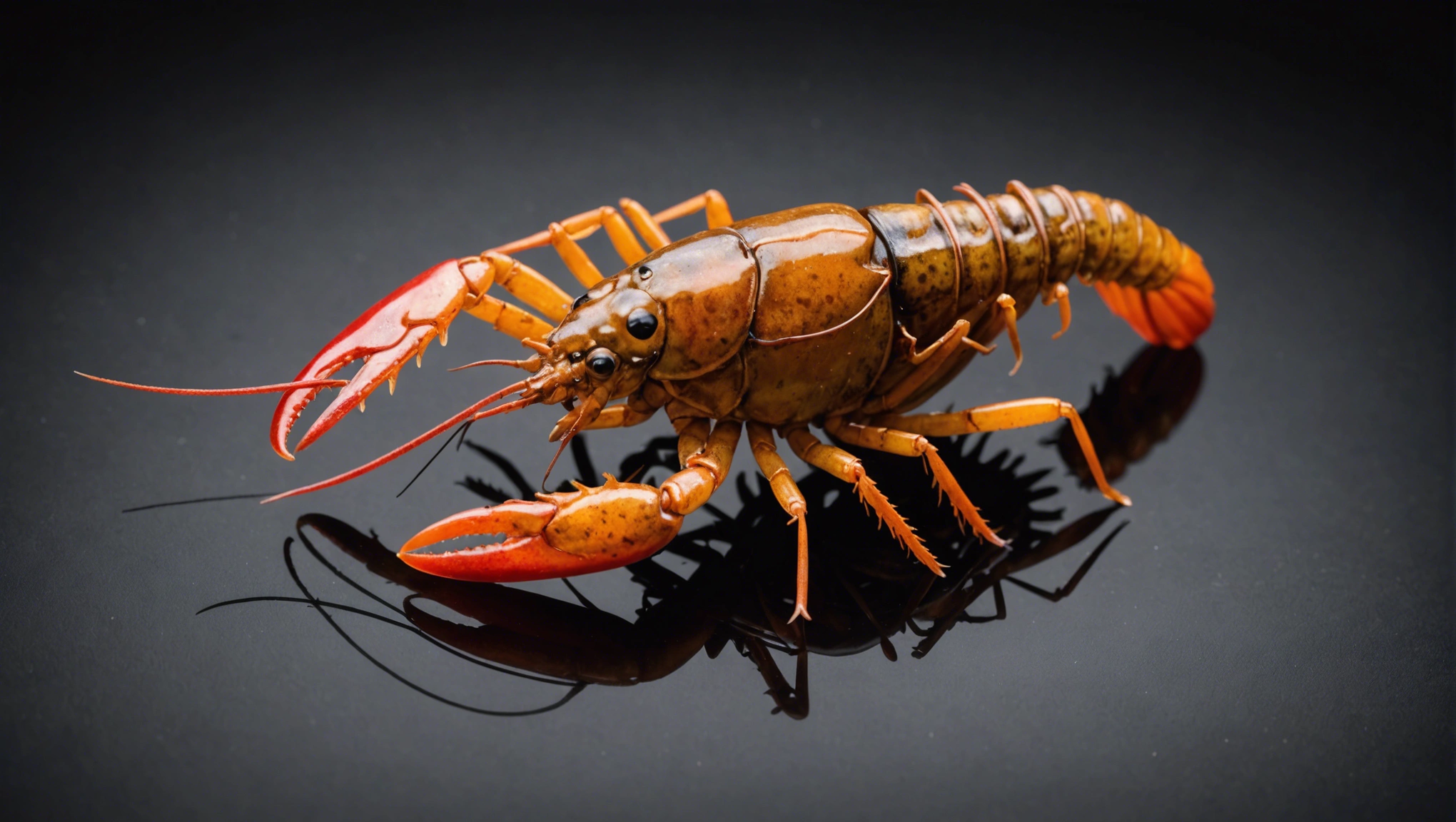 Fishing lure with fishing hooks like (((Light Brown Crawfish))). A studio shot masterpiece lure product photo centered on a (black background).