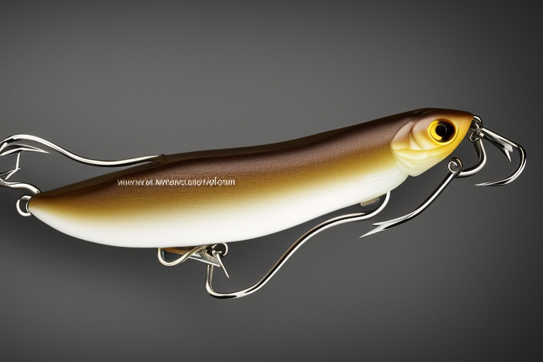 Stable Diffusion AI Prompt product photography of a fishing lure with hooks that looks like a Light Brown colored Minnow!!!, (anatomically correct), futuristic, uhd, highly detailed, concept, product studio shot, panoramic shot, centered!!!, diffused lighting on a plain dark background, highly detailed, masterpiece, product photography by Wlop and Jovana Rikalo