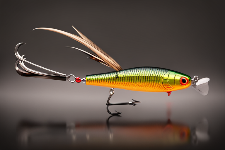 Stable Diffusion AI Prompt A panoramic studio shot of a highly detailed conceptual fishing lure designed to catch bass, centered in the image. The lure precisely mimics the exact (((shape and colors of a Rodent))). It has treble hooks and is Light Brown in color. The Rodent-shaped lure is lit with diffused lighting against a plain dark background. A masterpiece product photo by photographer Jovana Rikalo.