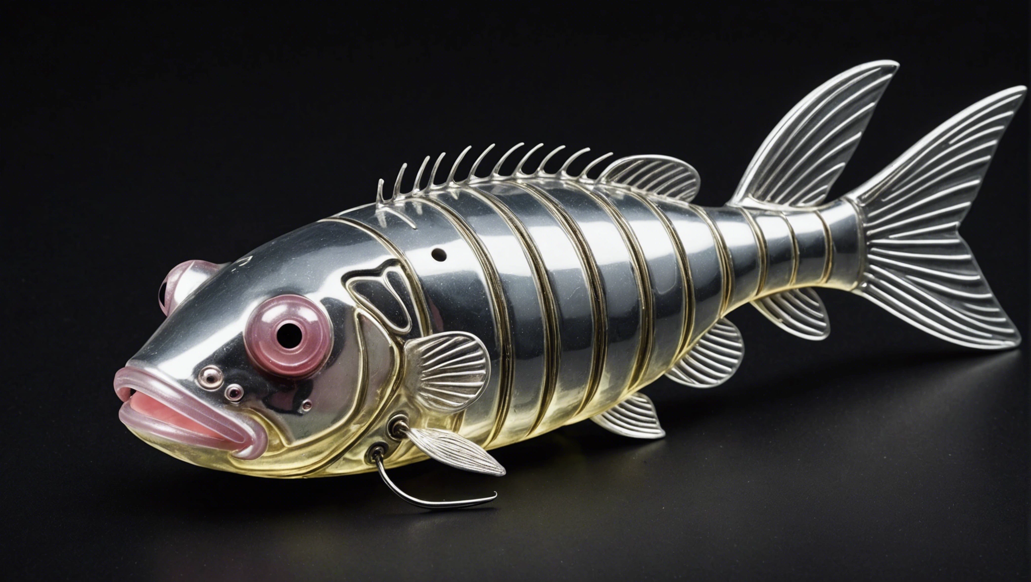 Stable Diffusion AI Prompt product photography of a fishing lure with hooks that looks like a Natural colored Blobfish!!!, (anatomically correct), futuristic, uhd, highly detailed, concept, product studio shot, panoramic shot, centered!!!, diffused lighting on a plain dark background, highly detailed, masterpiece, product photography by Wlop and Jovana Rikalo