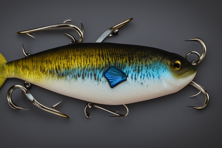 Stable Diffusion AI Prompt product photography of a fishing lure with hooks that looks like a Natural colored Bluegill!!!, (anatomically correct), futuristic, uhd, highly detailed, concept, product studio shot, panoramic shot, centered!!!, diffused lighting on a plain dark background, highly detailed, masterpiece, product photography by Jovana Rikalo