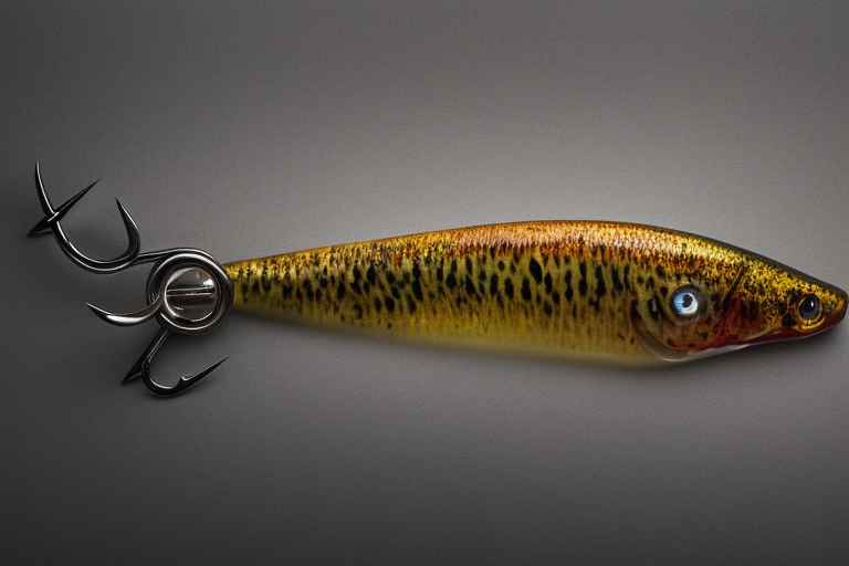 Stable Diffusion AI Prompt product photography of a fishing lure with hooks that looks like a Natural colored Crappie!!!, (anatomically correct), futuristic, uhd, highly detailed, concept, product studio shot, panoramic shot, centered!!!, diffused lighting on a plain dark background, highly detailed, masterpiece, product photography by Wlop and Jovana Rikalo