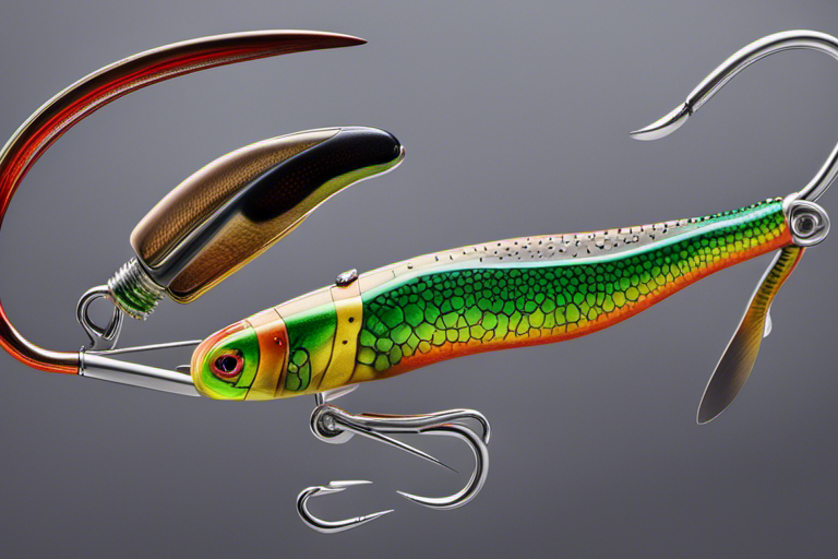 Stable Diffusion AI Prompt product photography of a fishing lure with hooks that looks like a Natural colored Lizard!!!, (anatomically correct), futuristic, uhd, highly detailed, concept, product studio shot, panoramic shot, centered!!!, diffused lighting on a plain dark background, highly detailed, masterpiece, product photography by Jovana Rikalo