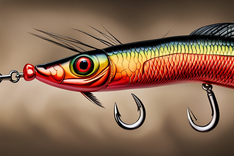 Stable Diffusion AI Prompt Fishing lure precisely mimics the exact shape and colors of a (((Natural Worm))). A panoramic studio shot of the highly detailed Natural colored ((Worm-shaped)) fishing lure with treble hooks designed to catch fish, centered product photography. A masterpiece product photo on a (black background).