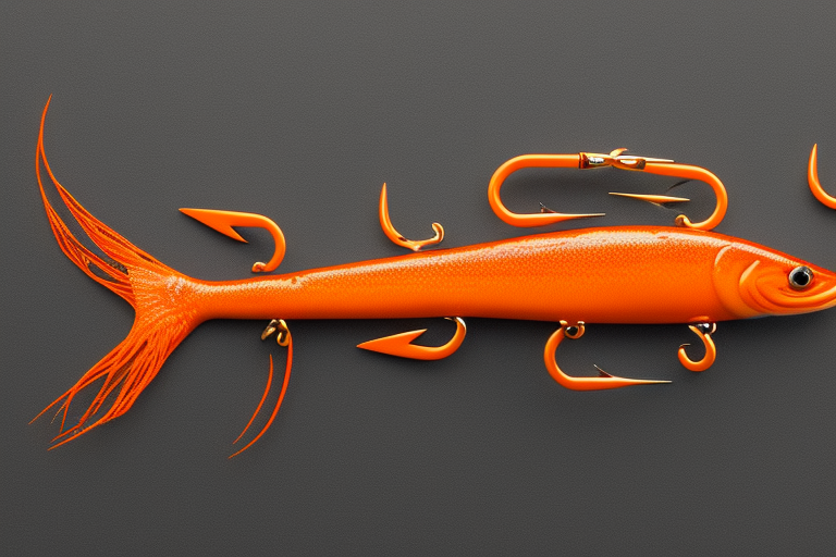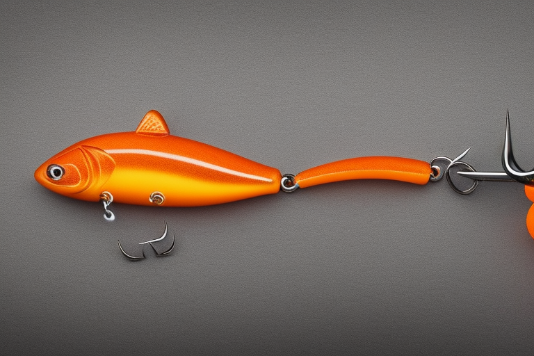 Stable Diffusion AI Prompt product photography of a fishing lure with hooks that looks like a Orange colored Trout!!!, (anatomically correct), futuristic, uhd, highly detailed, concept, product studio shot, panoramic shot, centered!!!, diffused lighting on a plain dark background, highly detailed, masterpiece, product photography by Jovana Rikalo