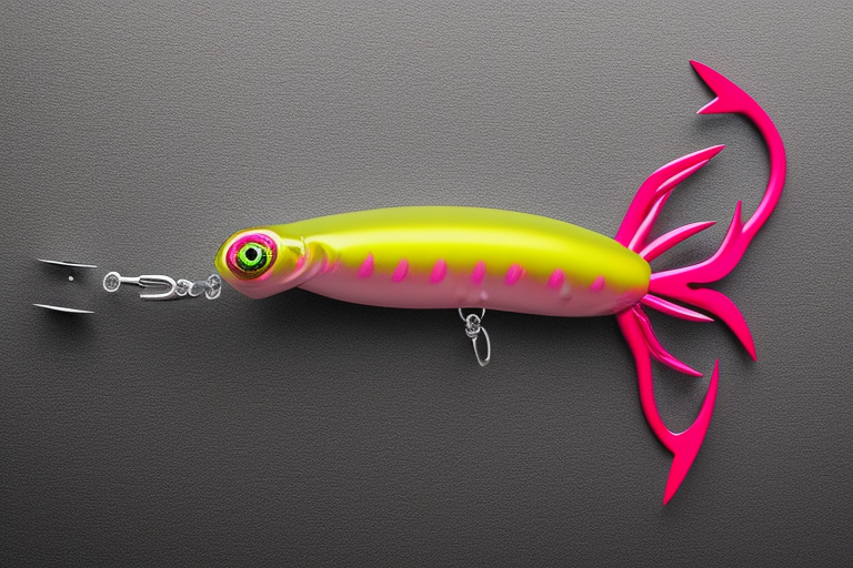 Stable Diffusion AI Prompt product photography of a fishing lure with hooks that looks like a Pink colored Lizard!!!, (anatomically correct), futuristic, uhd, highly detailed, concept, product studio shot, panoramic shot, centered!!!, diffused lighting on a plain dark background, highly detailed, masterpiece, product photography by Jovana Rikalo