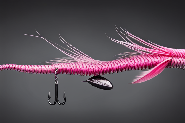 Stable Diffusion AI Prompt Fishing lure precisely mimics the exact shape and colors of a (((Pink Lizard))). A panoramic studio shot of the highly detailed Pink colored ((Lizard-shaped)) fishing lure with treble hooks designed to catch fish, centered product photography. A masterpiece product photo on a (black background).
