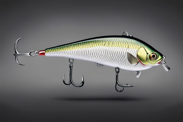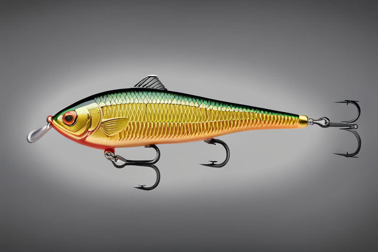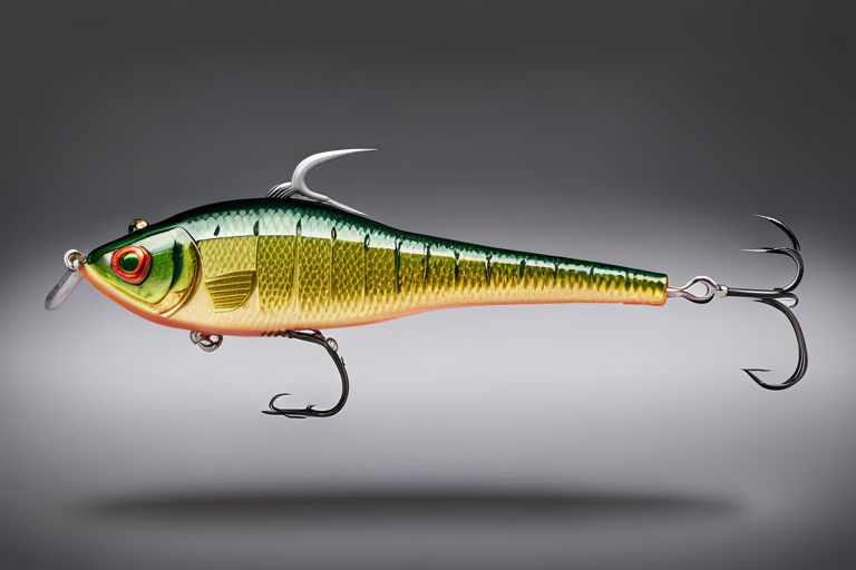 Stable Diffusion AI Prompt Fishing lure precisely mimics the exact shape and colors of a (((Pink Perch))). A panoramic studio shot of the highly detailed Pink colored ((Perch-shaped)) fishing lure with treble hooks designed to catch fish, centered product photography. A masterpiece product photo on a (black background).