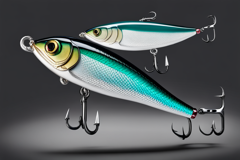 Stable Diffusion AI Prompt Fishing lure precisely mimics the exact shape and colors of a (((teal Shad))). A panoramic studio shot of the highly detailed teal colored ((Shad-shaped)) fishing lure with treble hooks designed to catch fish, centered product photography. A masterpiece product photo on a (black background).