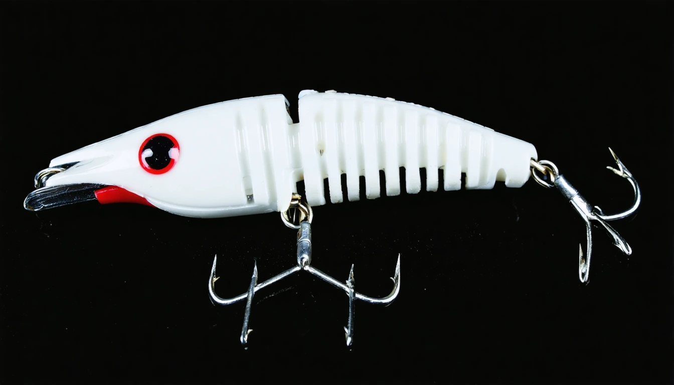 Fishing lure with fishing hooks like (((White Cockroach))). A studio shot masterpiece lure product photo centered on a (black background).