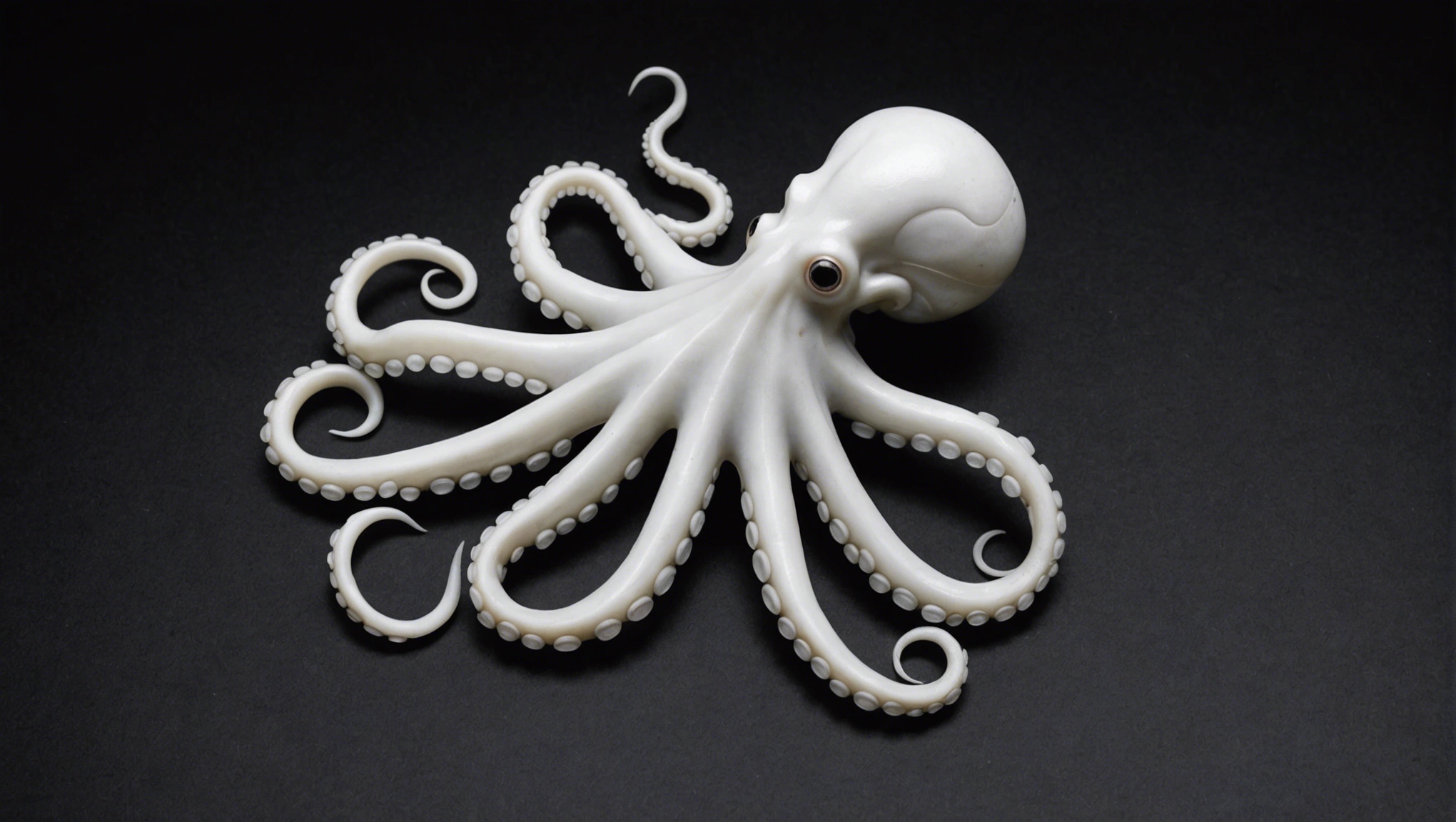 Fishing lure with fishing hooks like (((White Octopus))). A studio shot masterpiece lure product photo centered on a (black background).