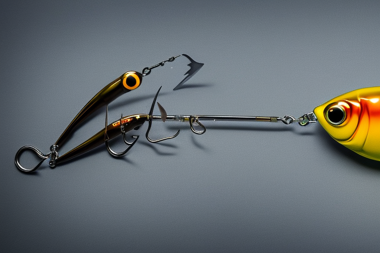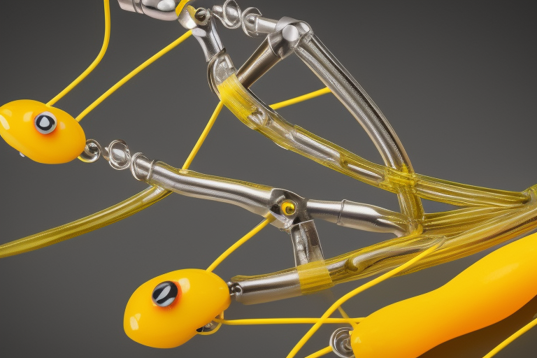 Stable Diffusion AI Prompt product photography of a fishing lure with hooks that looks like a Yellow colored Perch!!!, (anatomically correct), futuristic, uhd, highly detailed, concept, product studio shot, panoramic shot, centered!!!, diffused lighting on a plain dark background, highly detailed, masterpiece, product photography by Jovana Rikalo