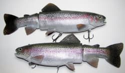 The Mattlures 13" DeadTwitch is the first large trout bait Matt has officially released to the public. The realism of this bait is absolutely ridiculous. This is some of Matt’s finest work and you won’t find a more realistic trout bait anywhere. The Deadtwitch is a floating single jointed, soft bodied bait with a hard interior core. The bait is more than just a deadstick bait. It can be worked to. It will easily do a 180 with a medium twitch. It will slow walk with lighter twitches , and you can even make it tail slap or dive with harder twitches. As A dead stick bait, the top of the baits sits slightly above the water with the top fin sticking out of the water for visibility. Just let it bob in the ripples of the water and the bait comes to life. The fins and tail section all have their own movement witch add to the realism of this bait. It looks like a freshly stocked injured trout. Big bass and Stripers can’t resist this easy big meal. The bait is approximately 13" and weighs 14oz. It is equipped with 2 Owner st-41 2/0 treble hooks.