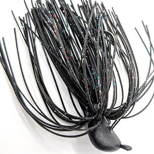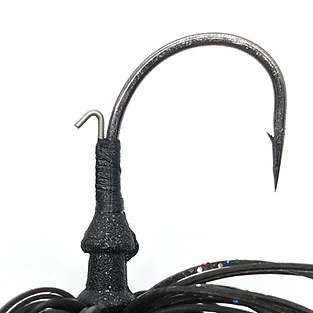 - oz arky head painted matte black victory hook hand tied black flag pattern skirtblack round rubber hand tied baitkeeper molded dual wire weeguard
