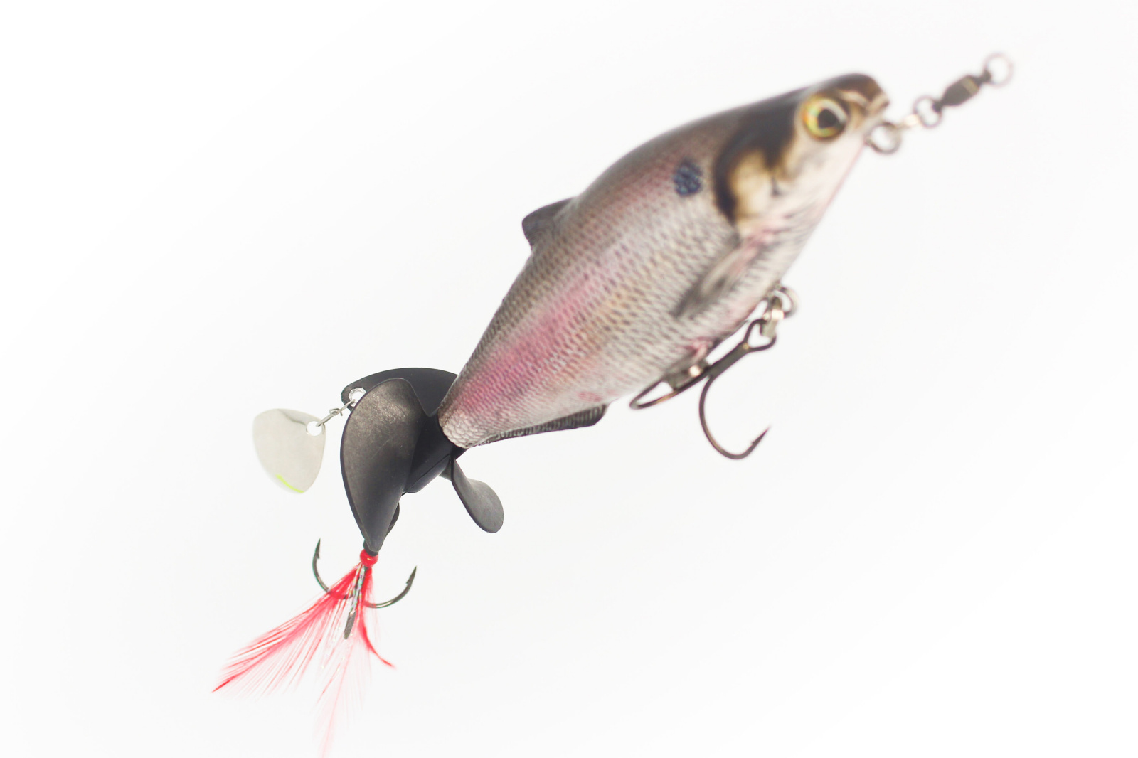 - introducinggeneration chopper shadrefinedremodeled successorcontinually seek originalityfish acrechopper shadrear prop setveclippedpropsized colorado bladeretrieved plopssplashesspunpropellerunique soundflashremovebladefishsubtlereplacesizes stylesachievesoundschopper shad floatstail slightlyallowingultra realistic paintprofilered flashfeathered treble hook givingwounded appearancebelly magnetaddedowner st hook pinnedlurepreventing hook rashhookdegree bendhook pointssit flushbottombait attachednosebaitsplit ringpound stainless steel ball bearing swivelswivel helpsbait keeledrear propspin freelyretrievedvaluable assetfishing arsenal