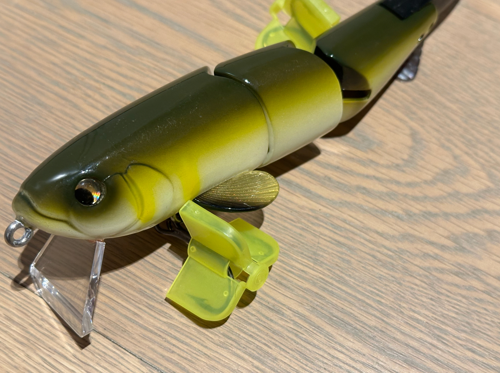 Developed for trophy bass, Husky Hasuzzy is a hand crafted wooden swim bait. Fish can't ignore the life-like swimming action. Also a great dead stick bait.