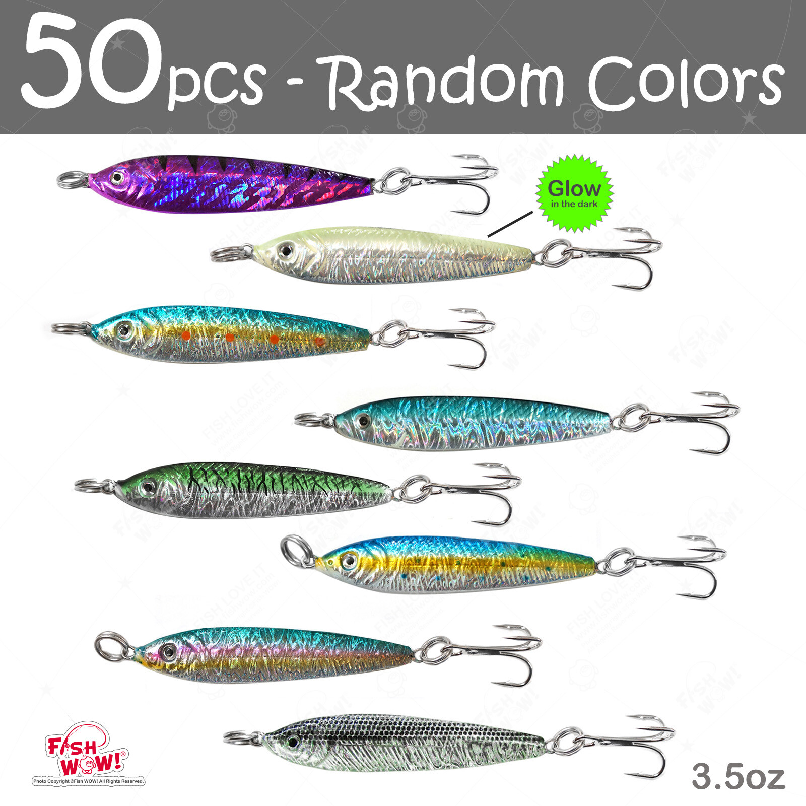 50pcs Fish WOW! Fishing Mega Live Bait 3.5oz Metal luna Jig Random Color Mix NEW