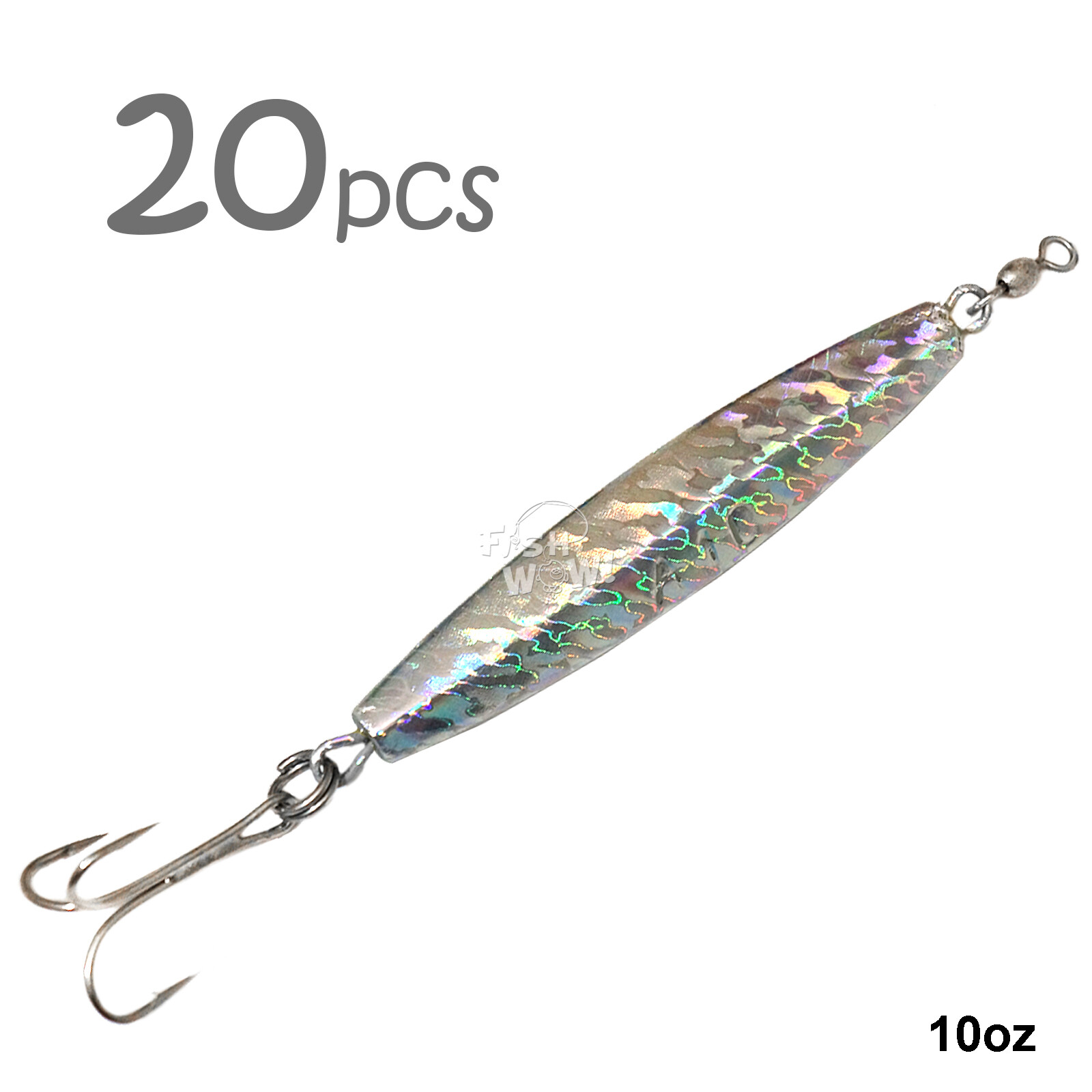 20pcs 10oz Fishing Diamond Jig Fish Mylar Holographic Laser 5/0 Treble Hook NEW