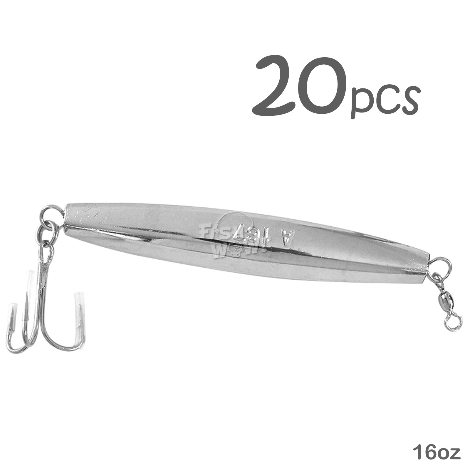 PLEASE VISIT OUR STORE AT HTTP://STORES.EBAY.COM/FISHWOW TO FIND MORE EXCITED DEALS!! DESCRIPTION Item Name Fish WOW! Fishing Diamond Jig w/ a Treble Hook Bait Size Weight in Ounces Hook Size Length (included hook & ring) Length (body) 16oz 7/0 11 in 7.5 in Included Total is 20 pieces. Condition * New in the pack. * Brand Name: Fish WOW!® * This diamond shape design drops vertically at high speeds and gets you right on top of the fish even with a heavy drift. * Cast them or troll them or bounce them off the bottom, they work great on fish like Codfish, Bluefish and Striped Bass. * Diamond jigs tame a variety of salt water brutes. * Great for Jigging, Casting and Ripping. * Please check the item carefully you will receive what you see on the picture. * Picture shows the actual goods. What you see is what you get. Color Please see the images. (*Please note that the colors may be slightly different from the originals, depending on the settings of your monitor.) Shipping * We're U.S. Seller. * Ship to USA only. * Your item will ship within 24 hours (Mon-Fri) of receiving cleared payment. * Buyer responsible for extra shipping fee of the wrong address. * Delivery may take up to 1-10 days depending on demand and location. * Payment made on Saturday, Sunday or public holiday, package will be shipped out on next Monday or next business day (if Monday is holiday). * LOST or Stolen Orders (after delivery): We are not responsible for any order lost or stolen after delivery. Any such claim should be taken up with your local postal service or carrier. * International Buyers – Please Note: * Import duties, taxes, and charges are not included in the item price or shipping cost. These charges are the buyer's responsibility. * Please check with your country's customs office to determine what these additional costs will be prior to bidding or buying. Payment * Please make payment within 3 days after the auction or purchase. * We use eBay Payment system. Please contact eBay when you have questions or trouble. * eBay will calculate, collect, and remit sales tax by your state law. * Please double check your shipping address when you check out. Feedback * We strive to deliver 5-star customer service. If you are satisfied with the product you received, please leave us positive feedback with 5 stars. * Your feedback is very important to us. We must do our best to strive for your 5 star Feedback. Before you intend to leave a neutral or negative feedback, please give us a chance to get a solution for you. We must work hard to make sure EVERY CUSTOMER 100% SATISFIED and resolve any problem for you. * If we make a mistake in the shipping process such as wrong item, damaged item or lost package, we will either full refund both the purchase price and shipping cost or resend a new package again. We are committed to your full satisfaction. Return policy * Please contact us first before returning your items. * If you are not satisfied, please contact us within 3 days of receipt for refund. * Buyer pays shipping fee to return item within 14 days after receipt of shipment. Refund will be processed as soon as the item is received. * Any request to return an item for a refund will be charge a minimum restocking fee of 20% of the purchase price paid, plus any applicable sales tax. * Returns must include all original items undamaged, brand new, unused, all tags attached in the same condition it was received, and all original packaging. * Buyer is responsible for all shipping fees on returns. * Shipping charges are non-refundable. Refund given on merchandise only. * When shipping is included in the product price, such as marked "Free Shipping", actual shipping costs will be deducted from your refund. * Wrap the package carefully. All returned products must be in their original condition and packaging. * Once your package has been received and inspected, a refund will be issued to you for the price of the item(s) being returned. * Please save your return tracking number, and email it to us. We need this in case there are any issues during transit. * Please do not request a charge back of your purchase from your credit card company while waiting for us to completely process your request. Refund processing involves several steps, some that we cannot control, so please be patient while awaiting the credit for the original purchase to appear via the payment method that you used. * If you have any questions about whether a product can be returned, please call us before ordering. Contact us * Please contact us via eBay message. We will normally response to your email within 24 hours. If you do not receive our responds after 24 hours, please send the message to us again.