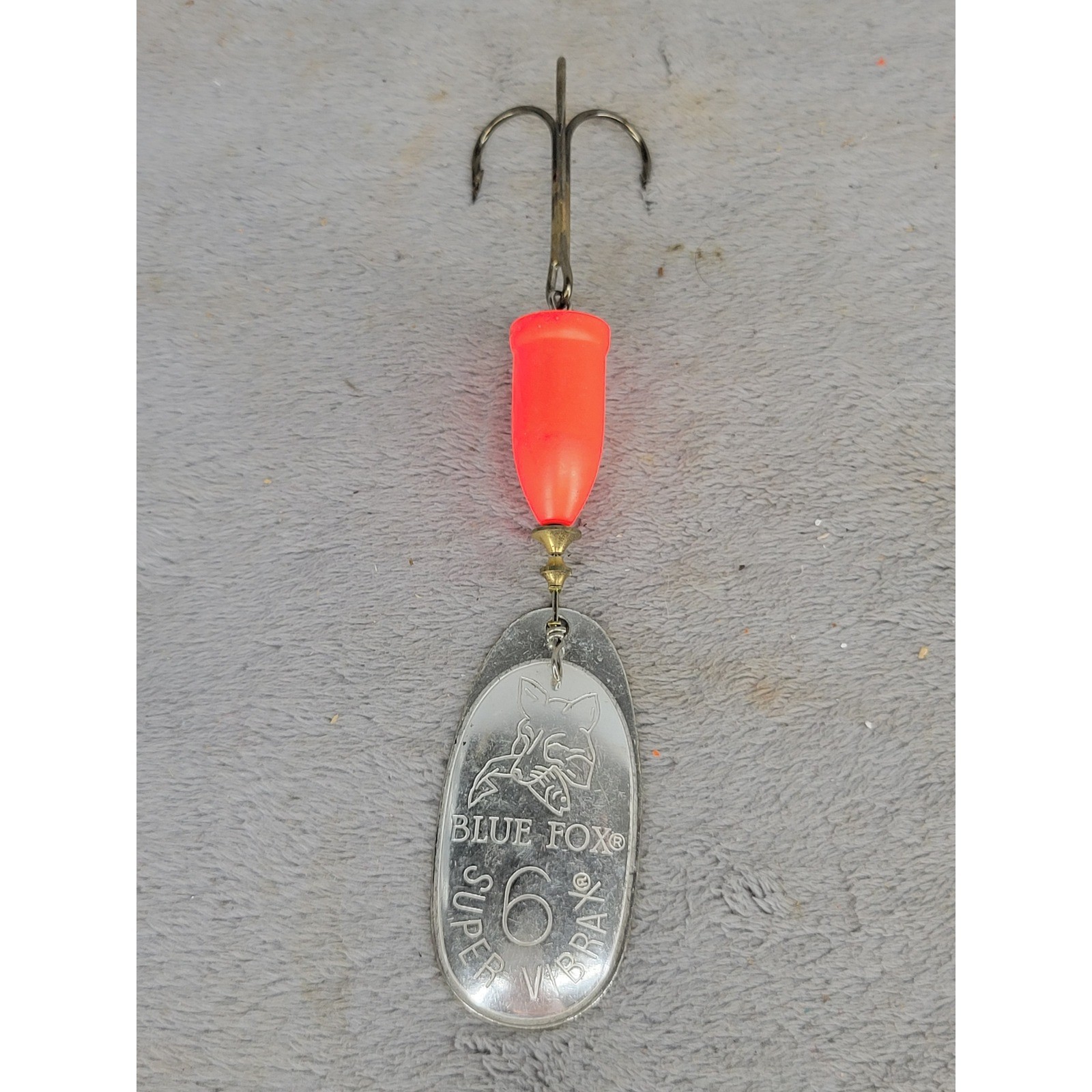 Measurements: • Total Length: 4.5" • Blade Length: 2" Brand: Blue Fox Model: Super Vibrax Size: 6 Color: Silver / Fluorescent Orange Type: Inline Spinner Blade Type: French / Oval Hook Type: Treble Hook Material: Metal / Plastic Country of Manufacture: Finland Patent: USPAT4163336 Target Species: Salmon, Steelhead, Pike, Musky Features: Anti-line twist design, Sonic vibration Keywords: Fishing Lure, Vintage Tackle, Spinnerbait, Salmon Fishing, Steelhead Gear, Big Game Fish, Finland Made, Vibrax Spinner, Fluorescent Tackle, Heavy Spinner, Angling Equipment, Retro Lure