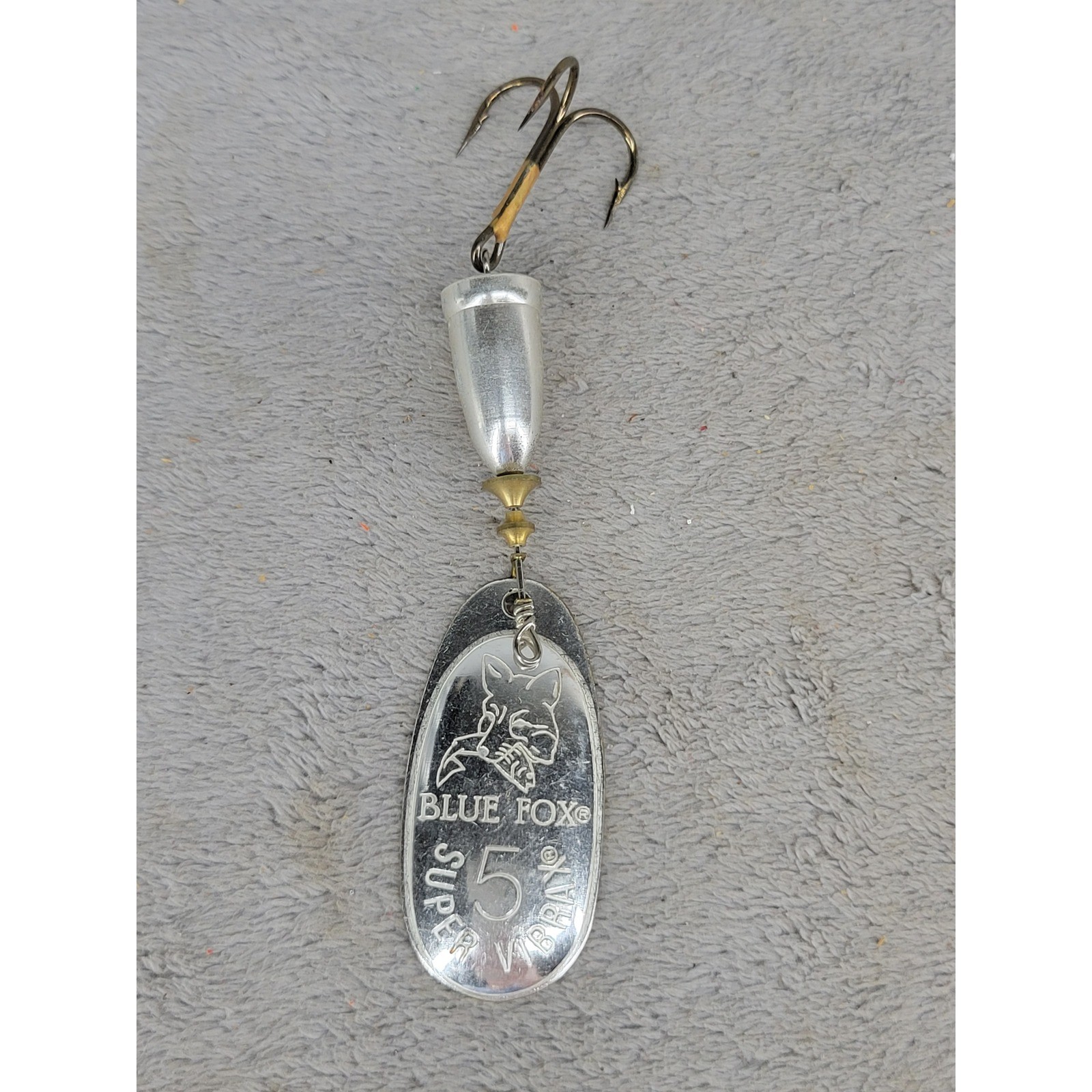 Measurements: • Length: 3.25" Brand: Blue Fox Model: Super Vibrax Size: 5 Color: Silver Material: Metal Type: Spinner Lure Hook Type: Treble Hook Country of Manufacture: Finland Patent Number: USPAT4163338 Blade Type: Inline Spinner Target Species: Bass, Pike, Salmon, Trout Weight: 7/16 oz (approx) Keywords: Fishing Tackle, Vintage Lure, Freshwater, Casting, Trolling, Angling, Retro Gear, Finland Made, Metal Spinner, Predator Fish, Sport Fishing, Outdoor Gear