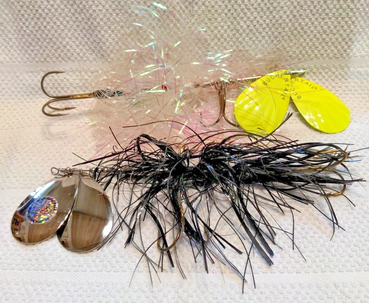 Tinsel Elvis Buchertail and Musky Mayhem Black Cowgirl Musky Lures Double Bladed